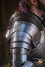 The Captain Pauldrons provide sovereign shoulder protection and are made from mild steel in Epic Dark and Epic Grey colours to emphasise honour and servitude. It is designed with a characteristic haute-piece that provides extra protection for the neck.