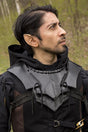 Epic Armoury’s Dark Elf Gorget is leather armour designed to protect the neck and upper chest. Made from black full-grain leather, this armour is made of several overlapping plates, creating flexibility and comfort while still protecting the thorax and neck. The shoulder plates are removable, and are shaped in traditional dark elf fashion. All exposed edges are reinforced with durable stitching to prevent it from deforming with excessive use.