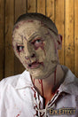 The face itself is narrow with a fine nose and pronounced eyebrows. Wrinkles and jagged edges give it the realistic appearance of having been torn away from the face of the victim. The complexion is a sickly yellow skin tone.
