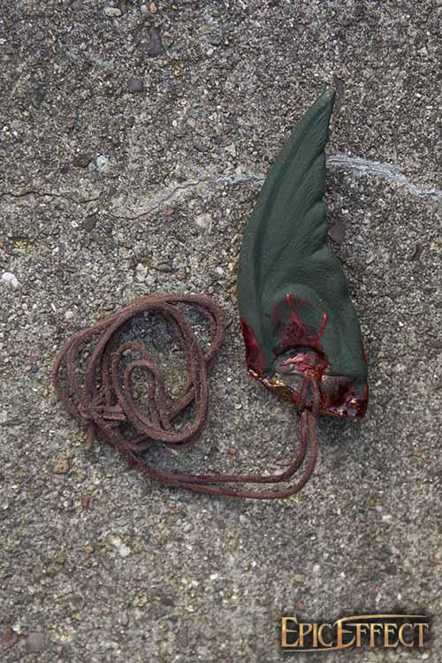 Epic Armoury’s Goblin Trophy Ear is a gruesome latex accessory designed to look like the gnarled and pointed ear of a goblinoid foe. Made from 100% natural latex and stuffed with cotton to give it mass and texture, this ear adornment can be hung as a talisman from a belt or neck using its leather cord. It is sure to create fear--and hatred--in the hearts of your goblin enemies.