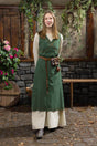 This light, sleeveless dress, made of fine cotton, fits closely to the upper part of the body and is adjusted to the figure with lacing in the back. The dress features a V-neckline with ornamental embroidery, which is continued at the hem. It can be worn as an overdress in combination with an underskirt, such as our Kaja underskirt or with a blouse, like our Lysia blouse. In the summertime, it can also be worn separately. There is plenty of room for your own imagination which makes the dress something very special.
