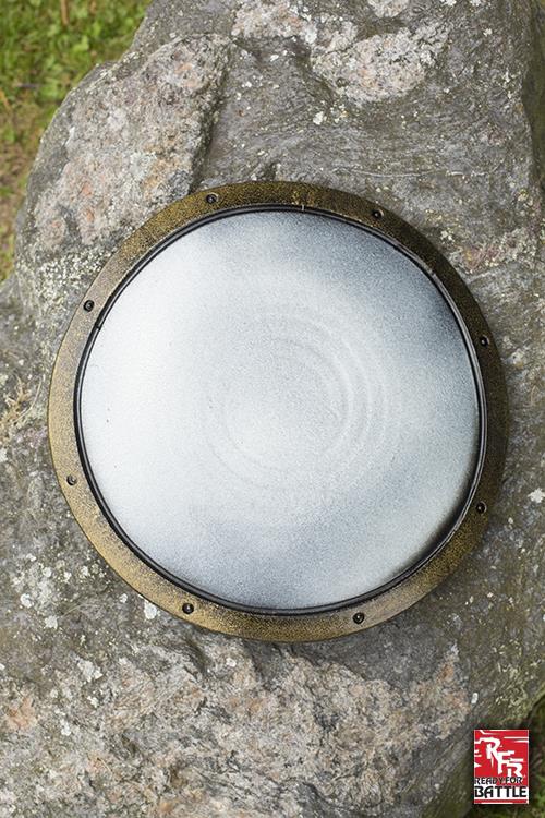 Epic Armoury’s RFB Buckler is a small, versatile latex shield inspired by skilled swordsmen through history. This 36 cm round buckler has a neutral design befitting many character types, sculpted and painted to look like iron rimmed with brilliant, shiny brass.