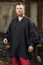 Designed with large, billowing sleeves and fitted cuffs, this shirt offers both style and functionality, allowing freedom of movement while maintaining an imposing silhouette. The lace-up collar slit provides an adaptable look—wear it open for a rugged, battle-worn aesthetic or tie it closed for a more formal, commanding presence.