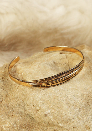 Dieser schöne Armreif aus bronze ist wikingerzeitlichen Originalen nachempfunden. Der Armreif besitzt viele filigrane Details und und eignet sich hervorragend als Wikingerschmuck auf einem LARP, oder Mittelaltermarkt. Natürlich passt der Schmuck aber auch zu vielen anderen Charakteren, wie beispielsweise einem nordisch angehauchten Schwertkämpfer.