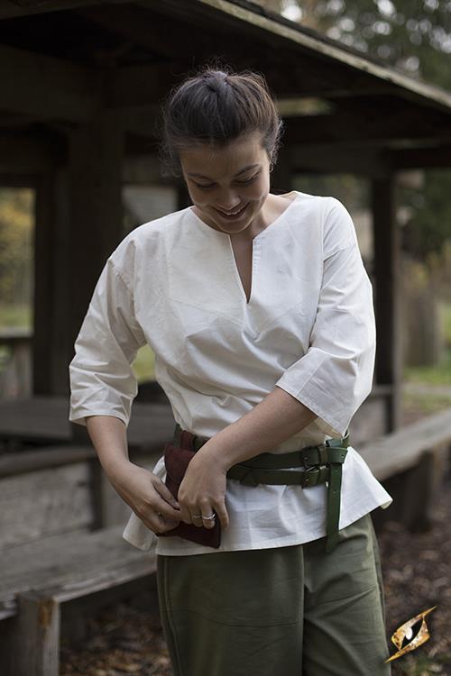 Das neue Odin-Hemd von Epic Armoury ist ein Kleidungsstück im Stil des frühen Mittelalters mit einem langen, v-förmigen Ausschnitt, das sowohl auf Komfort als auch auf Stil ausgelegt ist. Es fällt knapp über die Hüfte und ist aus bequemer, gefärbter Baumwolle gefertigt. Dieses Hemd ist ein äußerst vielseitiges Kleidungsstück, das sowohl als eigenständiges Kostüm als auch als Basisschicht für ein komplizierteres Design dienen kann. Die ¾ langen Ärmel haben eine lockere Passform, perfekt für die Arbeiterklasse oder den Soldaten.