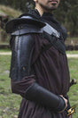Epic Armoury’s Shoulder Armour is a handsomely crafted piece of armour with shoulder and upper arm protection. Made from vegetable-tanned full-grain leather, this armour features a pauldron and a sword-breaker designed to deflect blows away from the head. Using overlapping and form-fitting plates to add extra strength to the leather, you can expect to use this shoulder guard for a long time with regular leather care. The upper arm guard is embellished with flattened leather cords and toned rivets.