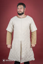 Outfit yourself with the classic Short-Sleeved Gambeson for a combination of protection and comfort. This traditional armored garment is made from soft cotton canvas which features light padding, which provides excellent defense without sacrificing freedom of movement. The strategically placed slits along its front and back are designed to let natural body curves move unimpeded in even the most rigorous medieval combat scenarios or LARP events, while short sleeves open up opportunities for intriguing layering options that will surely impress onlookers!